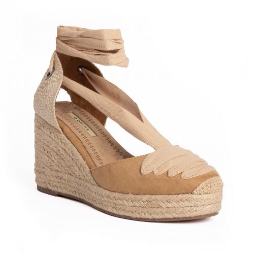 Cuña de crochet cerradas y cintas para agarrar en el tobillo , tiene 10 cm de altura y disponemos de 3 colores .